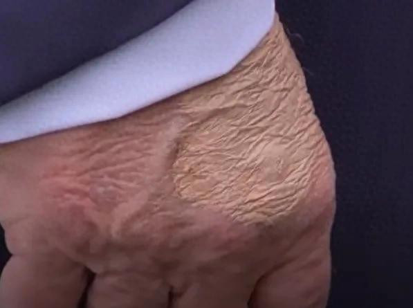 当地时间7月15日,特朗普被拍到手上涂抹药膏遮挡淤青。图源:环球网